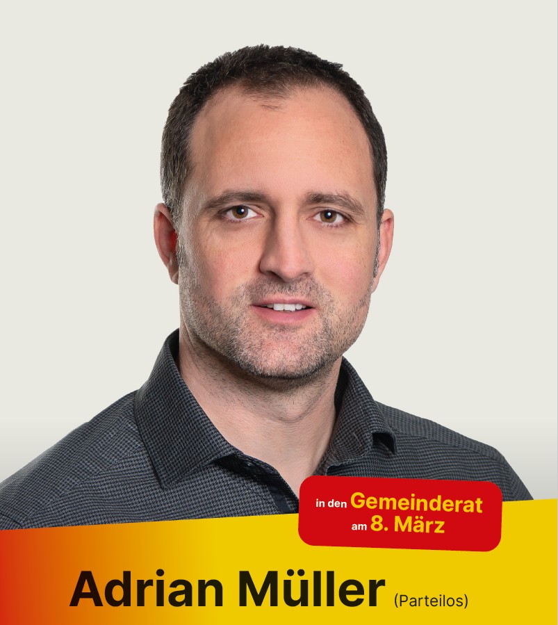 Adrian Müller ist in Richterswil aufgewachsen und fest in der Gemeinde verwurzelt. Er hat sich viele Jahre in verschiedenen Vereinen engagiert und bringt sich aktiv in der Elternmitwirkung der Schule Feld ein. Seine langjährige Berufserfahrung im Bereich Arbeitsagogik und seine aktuelle Tätigkeit als Jugendarbeiter qualifizieren ihn besonders: Er versteht es, zuzuhören, anzupacken und auf die Bedürfnisse der Menschen einzugehen.